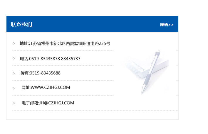 傳真:0519-83435688    郵編:213135    網址:WWW.czjhgj_com.lyruicheng.com    電子郵箱:JH@czjhgj_com.lyruicheng.com